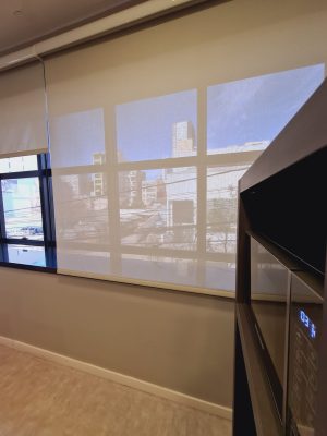 A Rolô Screen impede totalmente os efeitos dos raios solares nos móveis e protege o ambiente de reflexos indesejados. A composição é em poliester e PVC, facilitando totalmente a limpeza.