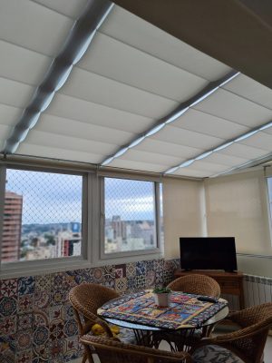 Ambientes integrados com tetos de vidro são tudo para quem prioriza o contato com a luz natural do dia. O problema é que nem sempre os raios de sol ajudam. Para que você não fique com calor demais ou não seja atingido em cheio pelos raios ultravioletas, você pode impedir a entrada da luminosidade de forma simples com uma PERSIANA DE TETO.