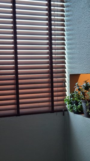 Você sabia que há uma cartela de cores disponível para o seu estilo de Persiana Horizontal de Madeira? São tons de marrom-madeira claros, escuros e brancos.